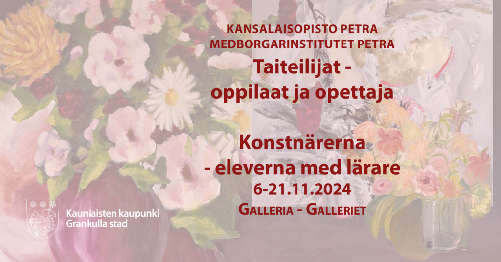 Utställningen “Konstnärerna – eleverna med lärare” är fylld av målningar av elever och lärare Svetlana Ruoho från kursen “Valo ja väri maalamisessa”. Idéen i Svetlana Ruohos bildkonstkurser är att eleven från känna att det är roligt att måla och att alla har en chans att lyckas.