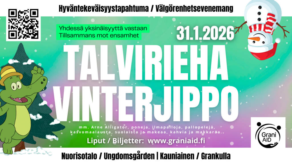 Alla intäkter från vinterjippot går oavkortat till Grani Närhjälp rf som strävar till att förebygga ensamhet i Grankulla. För mer information om Grani Närhjälp, besök www.graninlahiapury.fi.