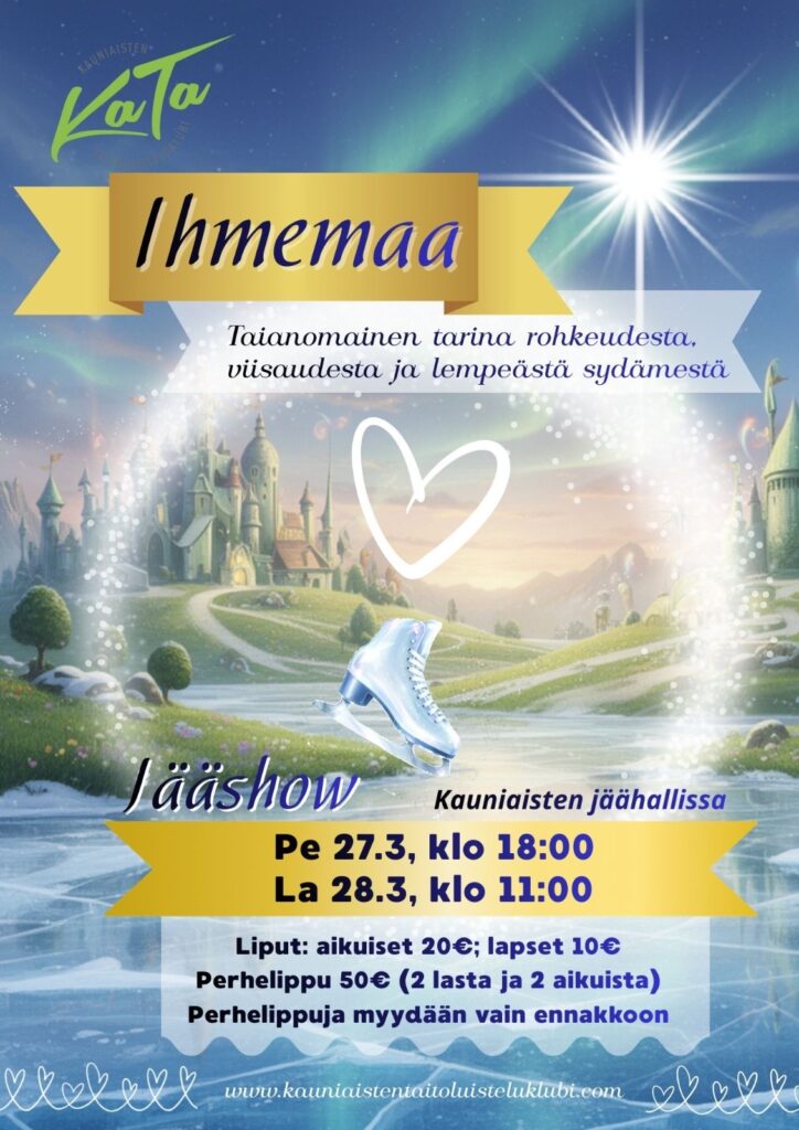 Kauniaisten Taitoluisteluklubi ry:n Ihmemaa kevätnäytös. Näytöksiä järjestetään kaksi.