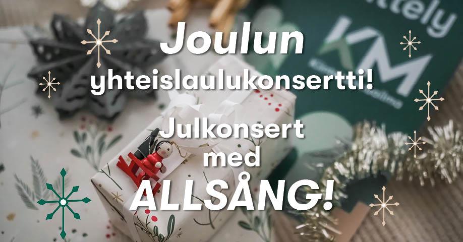 Tervetuloa laulamaan yhdessä perinteisiä joululauluja! Tarjoilemme ennen konserttia Paviljongin lämpiössä glögiä ja piparkakkuja klo 18.00 alkaen. Konsertti alkaa klo 18.30.