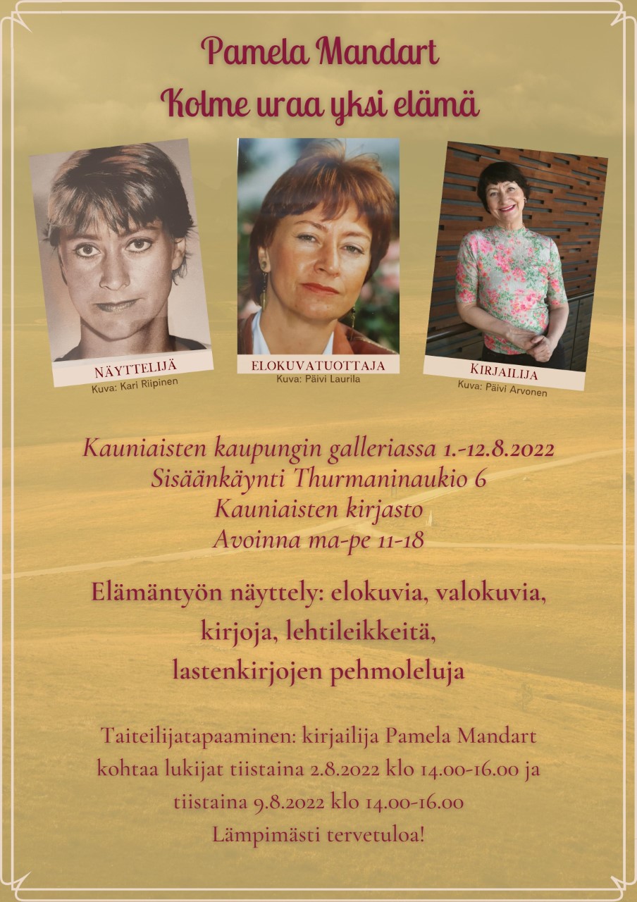 Kauniaisten Galleriassa on elokuun alussa Pamela Mandertin näyttely Kolme uraa yksi elämää
